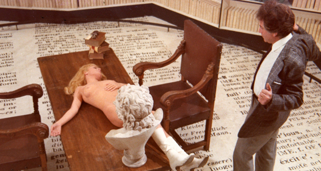 An aristocratic family becomes obsessed with a striking young blond actress (Silvano Venturelli “Camille 2000”) while watching her in what appears to be a crude, silent stag film. After a visit to a local carnival they meet the girl in person and invite her back to their lavish mansion (the Castle of Balsorano in Italy’s Abruzzi Mountains.) The blonde visitor takes turns seducing the family members, where she unlocks each of their fantasies, family secrets and hidden desires.