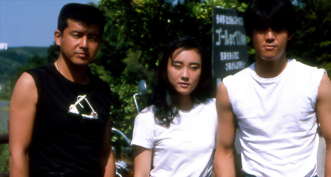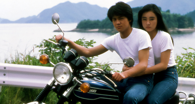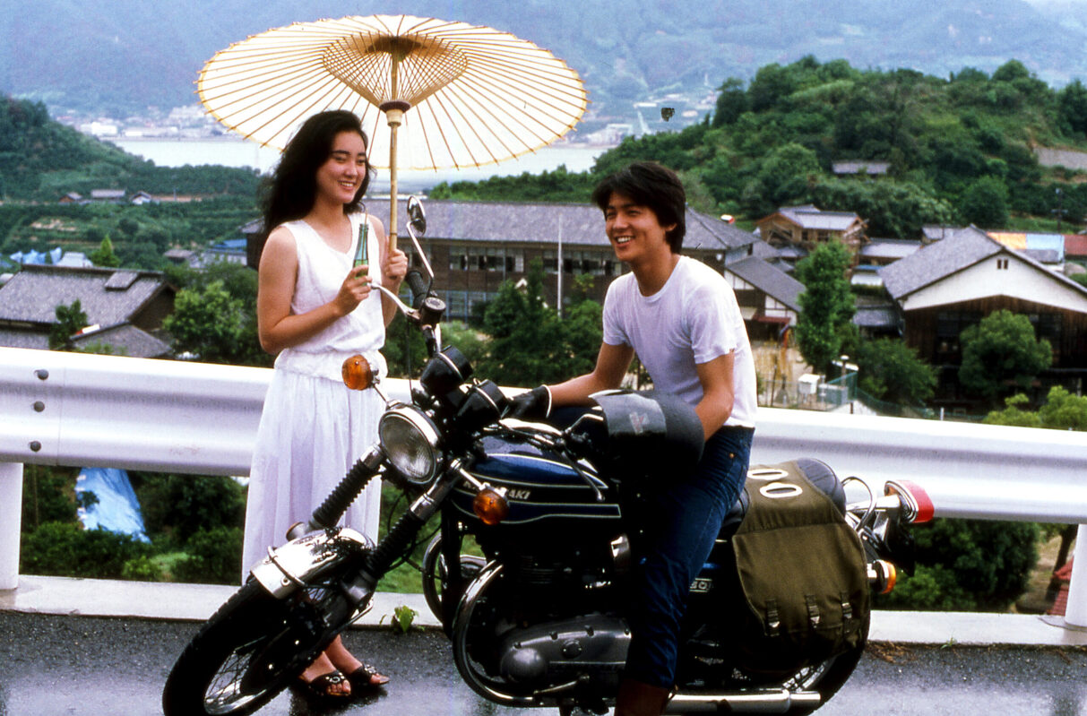 Following a painful breakup, macho biker Koh (Riki Takeuchi) skips town and hits the road on his beloved Kawasaki W3 650. On his countryside excursion, he encounters the free-spirited Miyo (Kiwako Harada, older sister of Obayashi favorite Tomoyo Harada) who quickly takes interest in both the leather-clad Koh and his motorbike. Koh and Miyo fall in love even as Miyo’s prodigious biking talent and thrill-seeking tendencies heighten Koh’s fear that she may push it all too far. A nostalgia-filled reminiscence, Nobuhiko Obayashi’s monochromatic dream playfully worships the biker culture of yesteryear, delivering a sentimental and liberating take on young love.